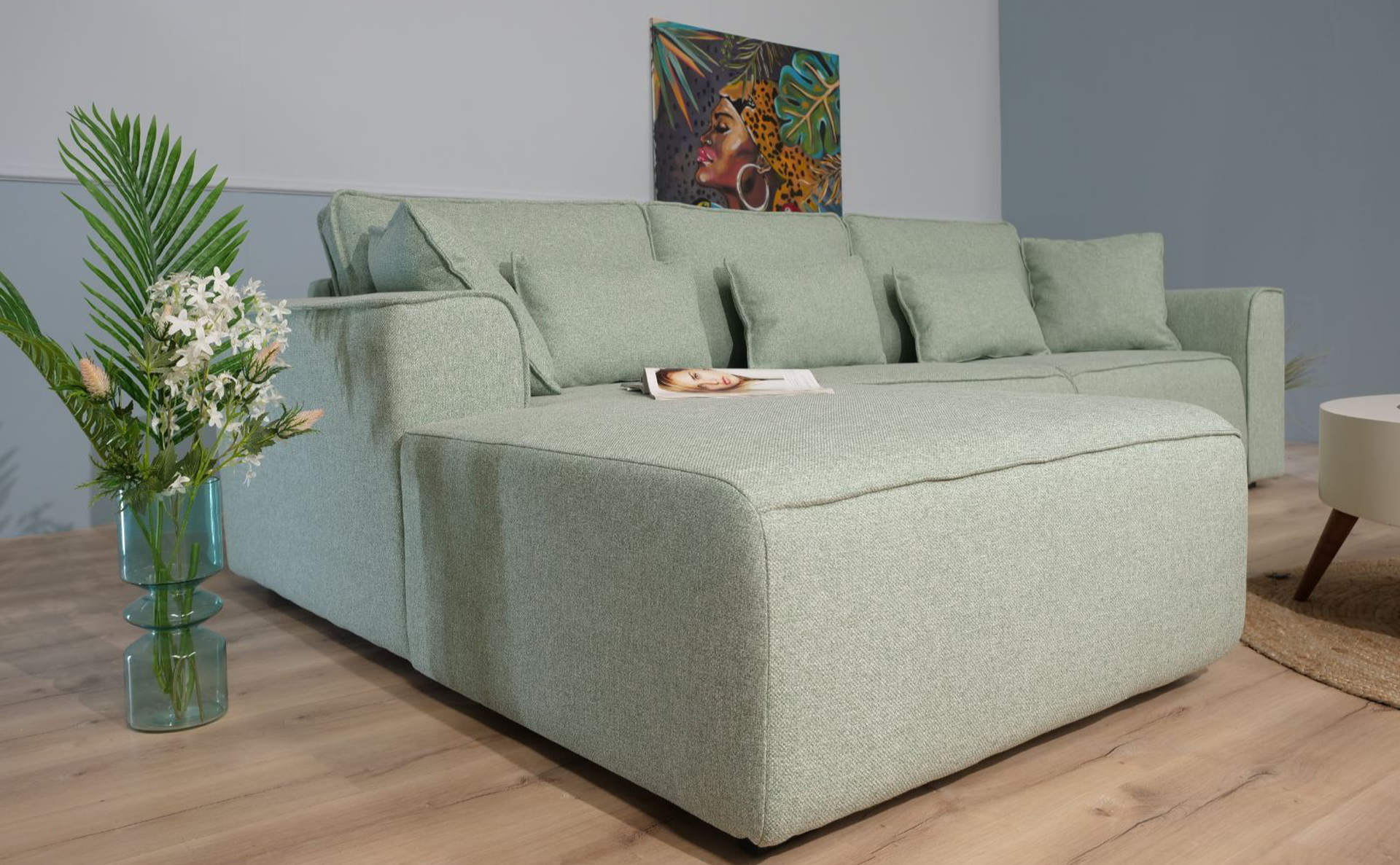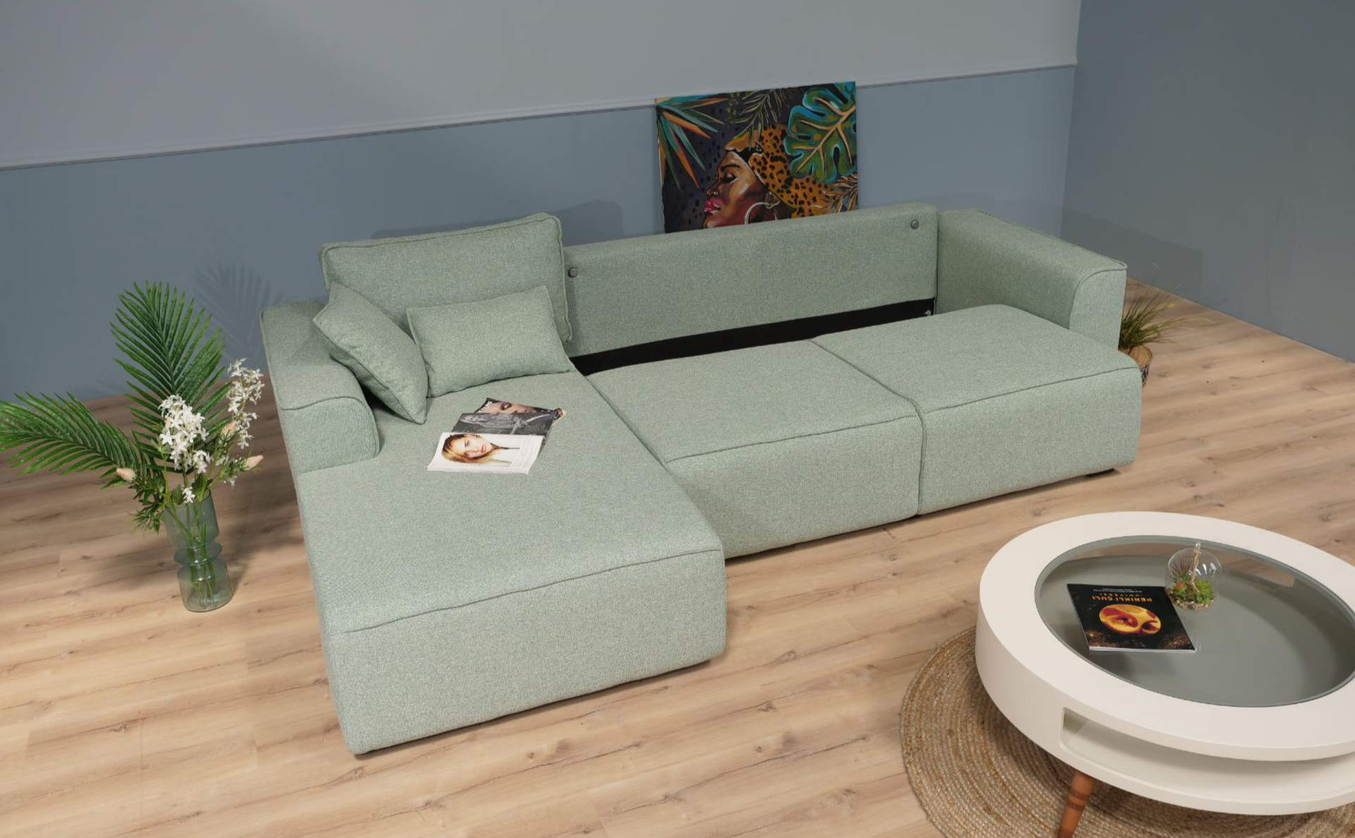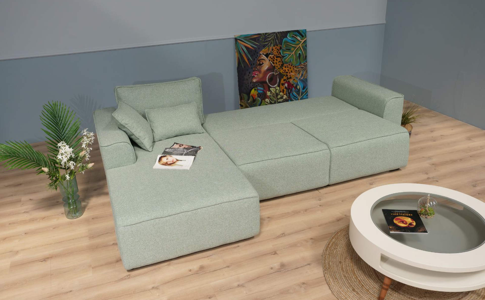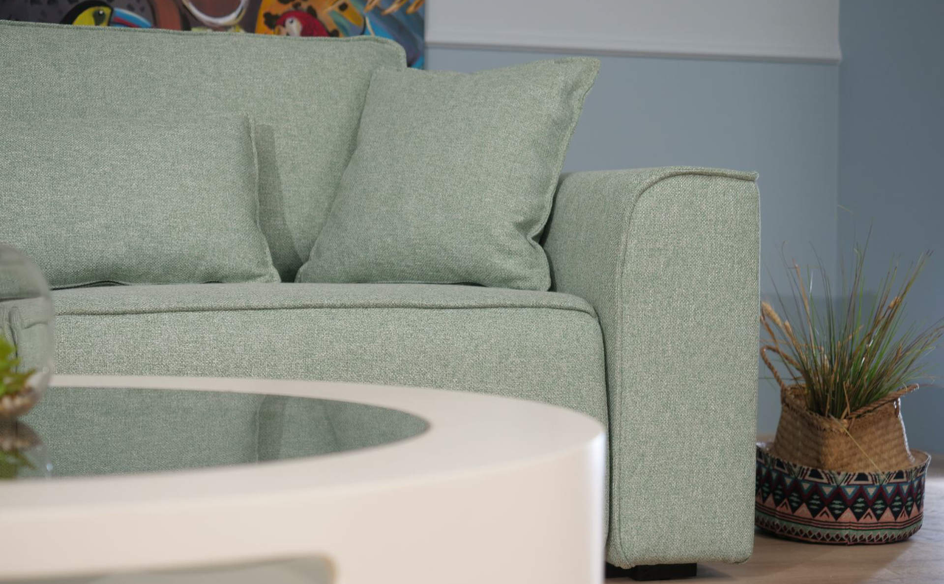 Κάθισμα : ειδικό αφρώδες υλικό με λάστιχα επαναφοράς που διατηρούν το αρχικό σχήμα του καναπέ – μέτρια σκληρότητα καθίσματος