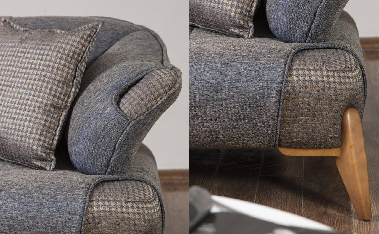 Κάθισμα : σταθερό αφρώδες υλικό με λάστιχα επαναφοράς που διατηρούν το αρχικό σχήμα του καναπέ – μέτρια σκληρότητα καθίσματος