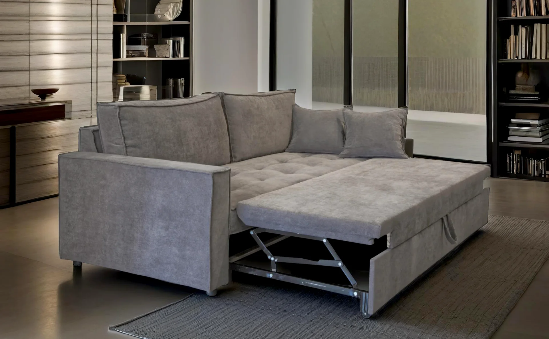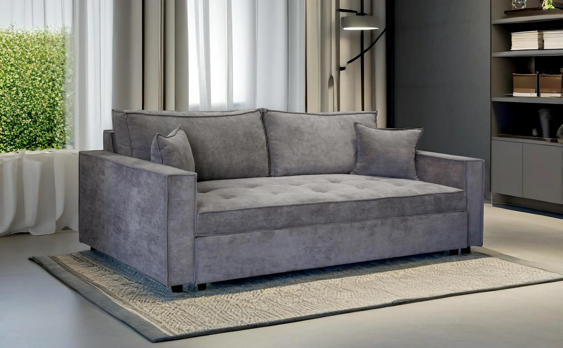 Ο καναπές-κρεβάτι Smart 81201 προσφέρει ιδανική ισορροπία μεταξύ στυλ και λειτουργικότητας. Διαθέτει ανθεκτικό σκελετό από οξιά, μεταλλικό μηχανισμό κρεβατιού και στρώμα πάχους 15 cm για άνεση. Με διαστάσεις κρεβατιού 185×150 cm, είναι κατάλληλος για καθημερινή χρήση και φιλοξενία. Το κάθισμά του διαθέτει αφρώδες υλικό με λάστιχα επαναφοράς, εξασφαλίζοντας σταθερότητα και μακροχρόνια χρήση.