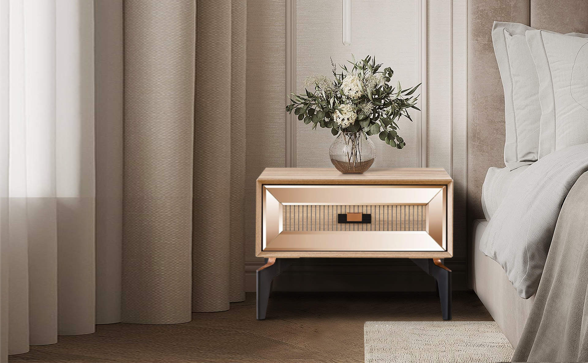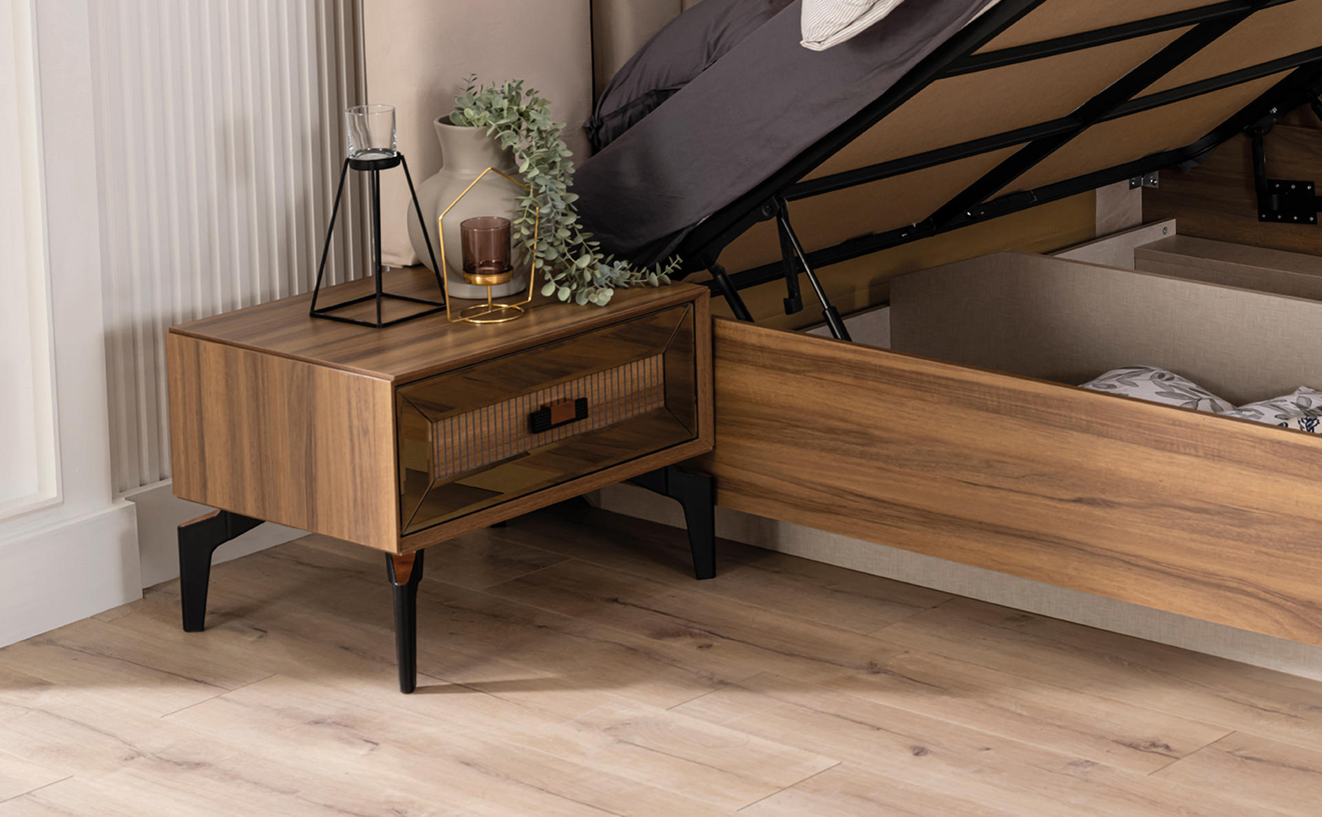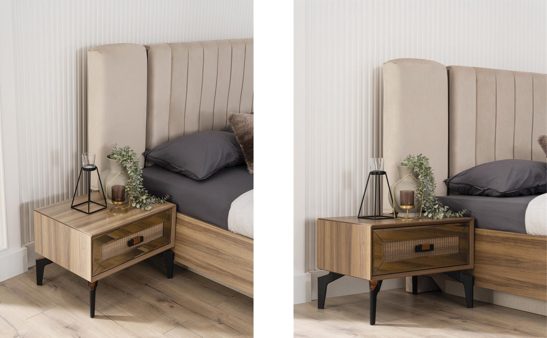 Βοηθητικά κομοδίνα, εξυπηρετικές συρταριέρες, όλα σχεδιασμένα εργονομικά με την καλύτερη ποιότητα.
