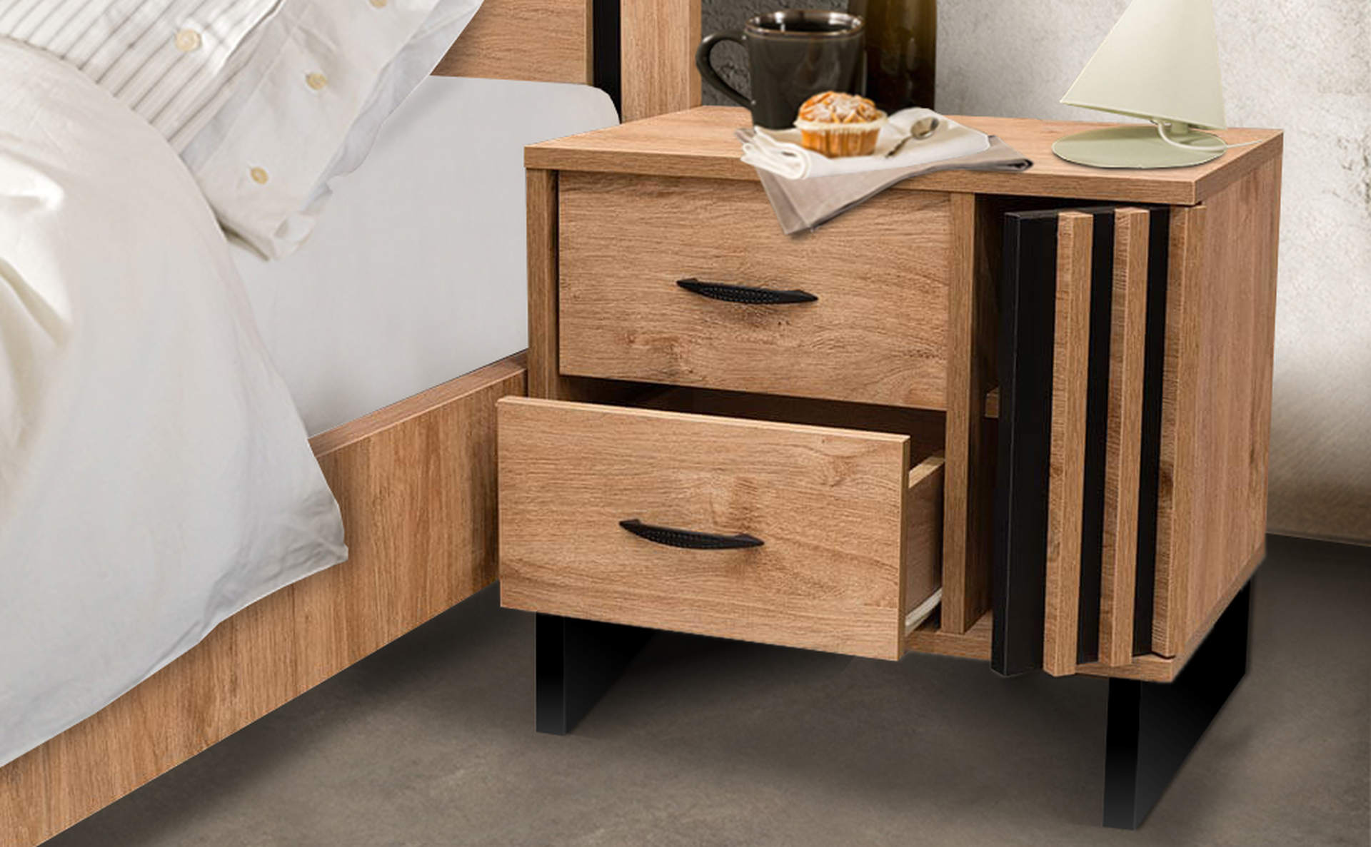 Βοηθητικά κομοδίνα, εξυπηρετικές συρταριέρες, όλα σχεδιασμένα εργονομικά με την καλύτερη ποιότητα.