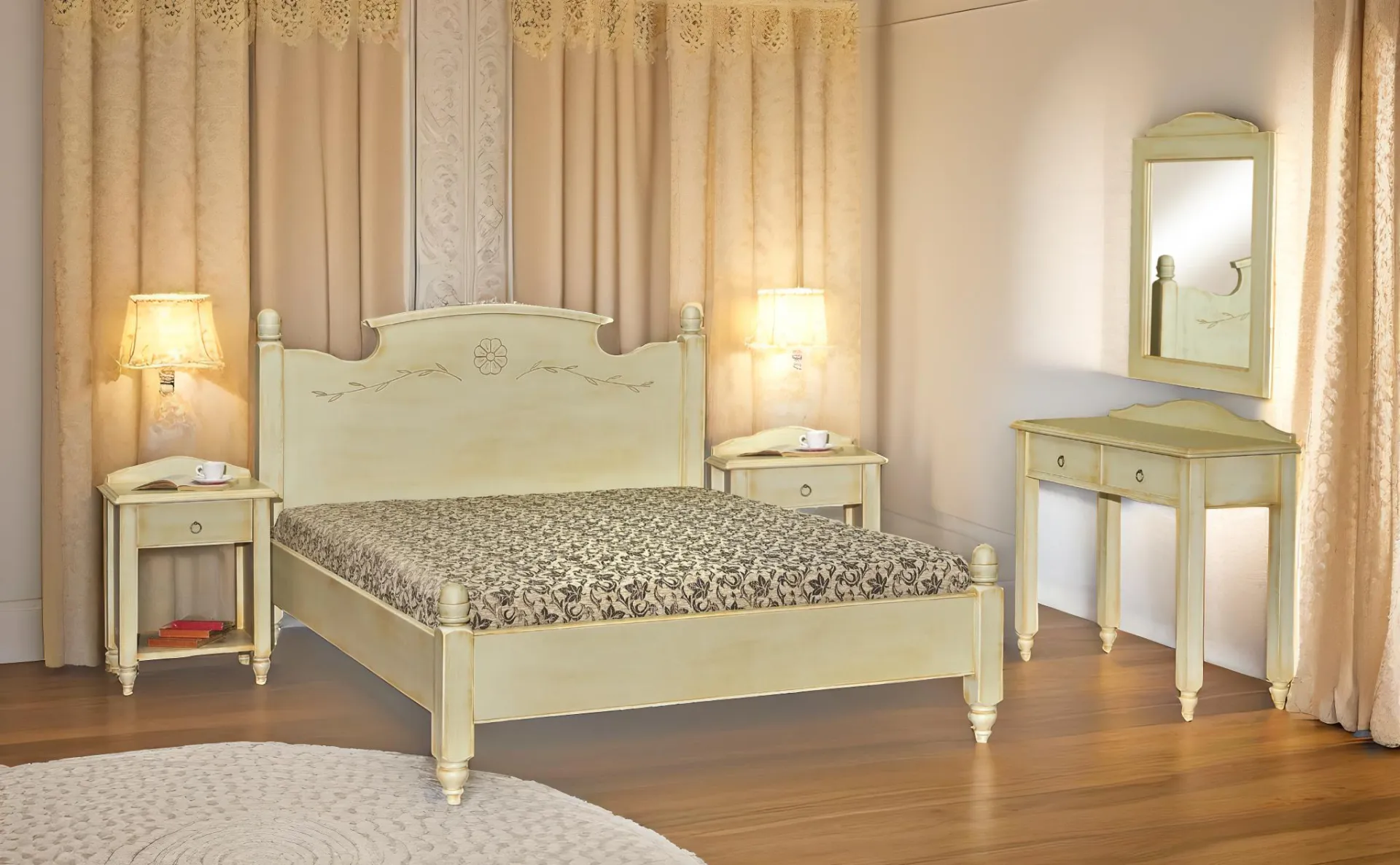 Δυνατότητα επιλογής σετ : διαθέτει κομοδίνα και συρταριέρα στο ίδιο στυλ, μπορείτε επίσης να επιλέξετε οποιοδήποτε κομοδίνο, τουαλέτα, καθρέπτη, από τα σετ κρεβατοκάμαρας