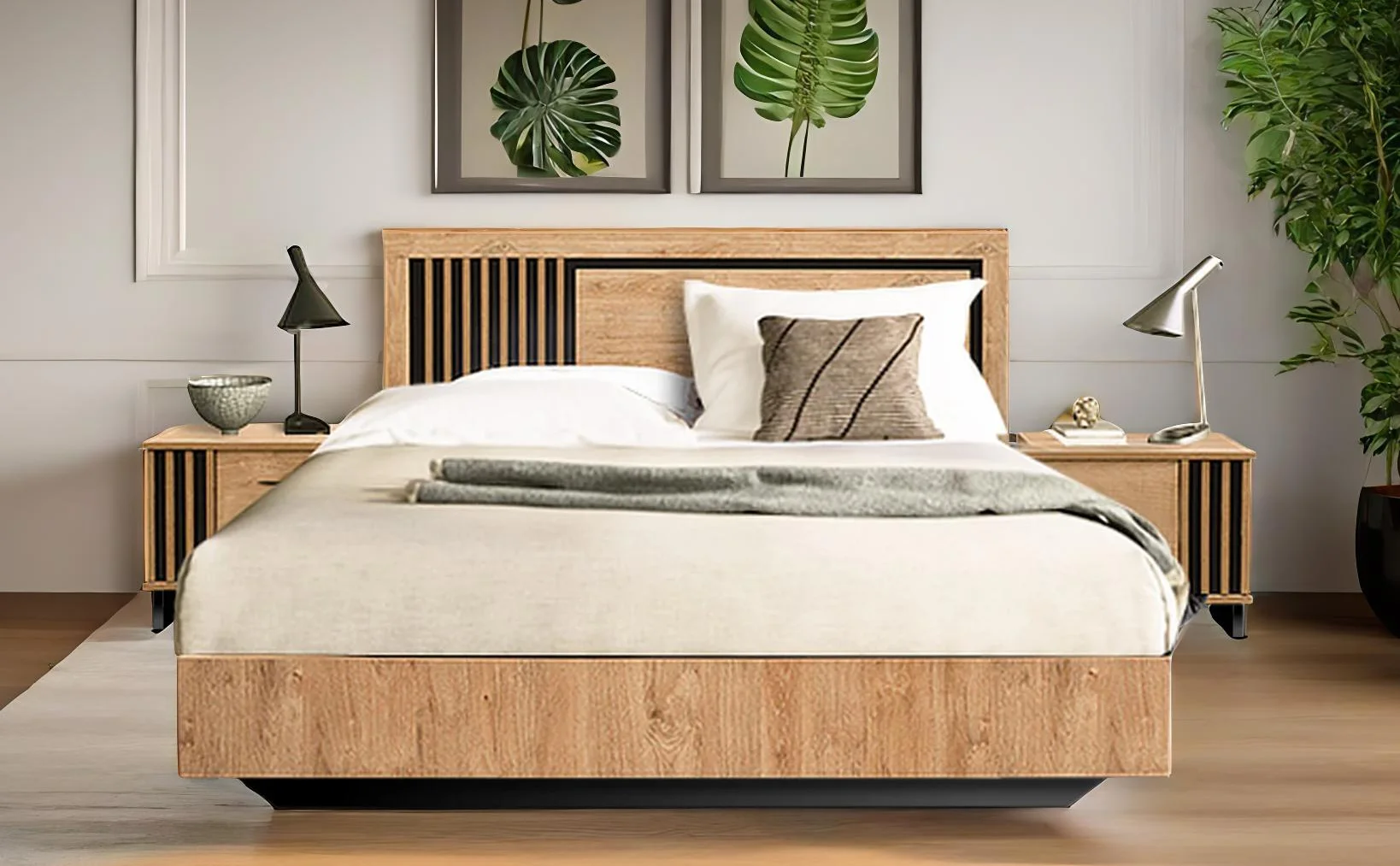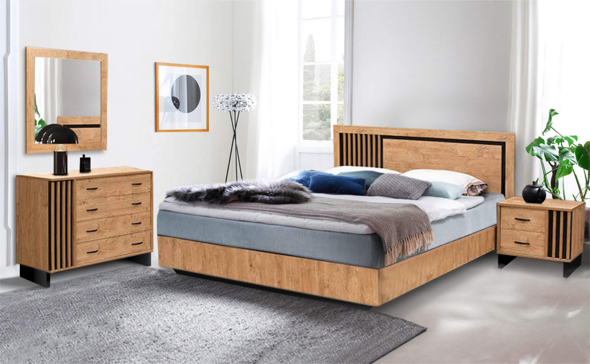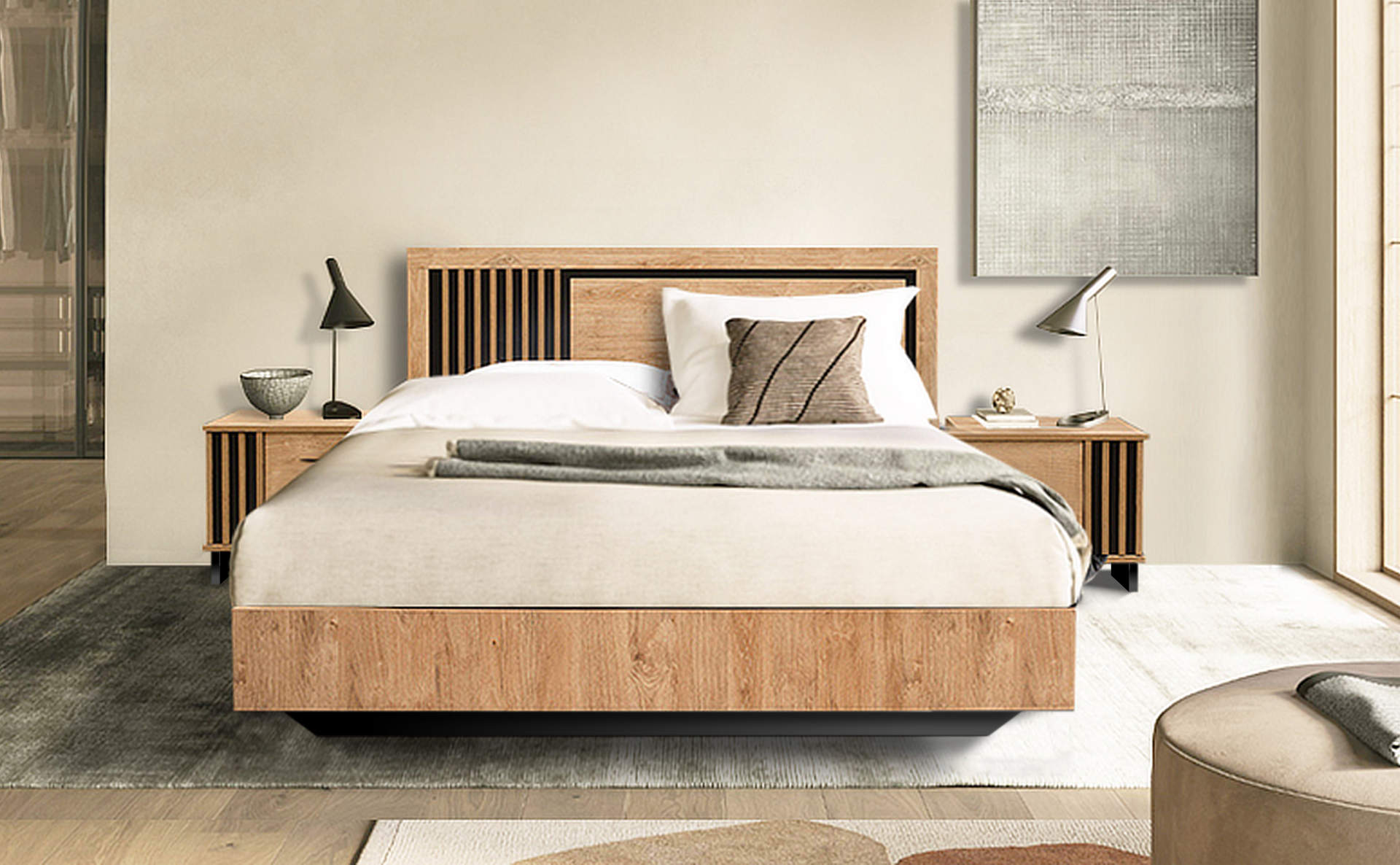 Η κρεβατοκάμαρα MARION 82330 συνδυάζει μοντέρνο σχεδιασμό με φυσική αισθητική, προσφέροντας έναν διαχρονικό χώρο ύπνου. Το κεφαλάρι με τις ξύλινες λεπτομέρειες και τις κάθετες γραμμές δημιουργεί μια εντυπωσιακή και κομψή εμφάνιση. Τα κομοδίνα εξασφαλίζουν πρακτικότητα, ενώ η συνολική κατασκευή εγγυάται αντοχή και στιβαρότητα. Ιδανική επιλογή για τουριστικά καταλύματα που θέλουν να ξεχωρίσουν με την υψηλή αισθητική και τη λειτουργικότητα του χώρου τους.