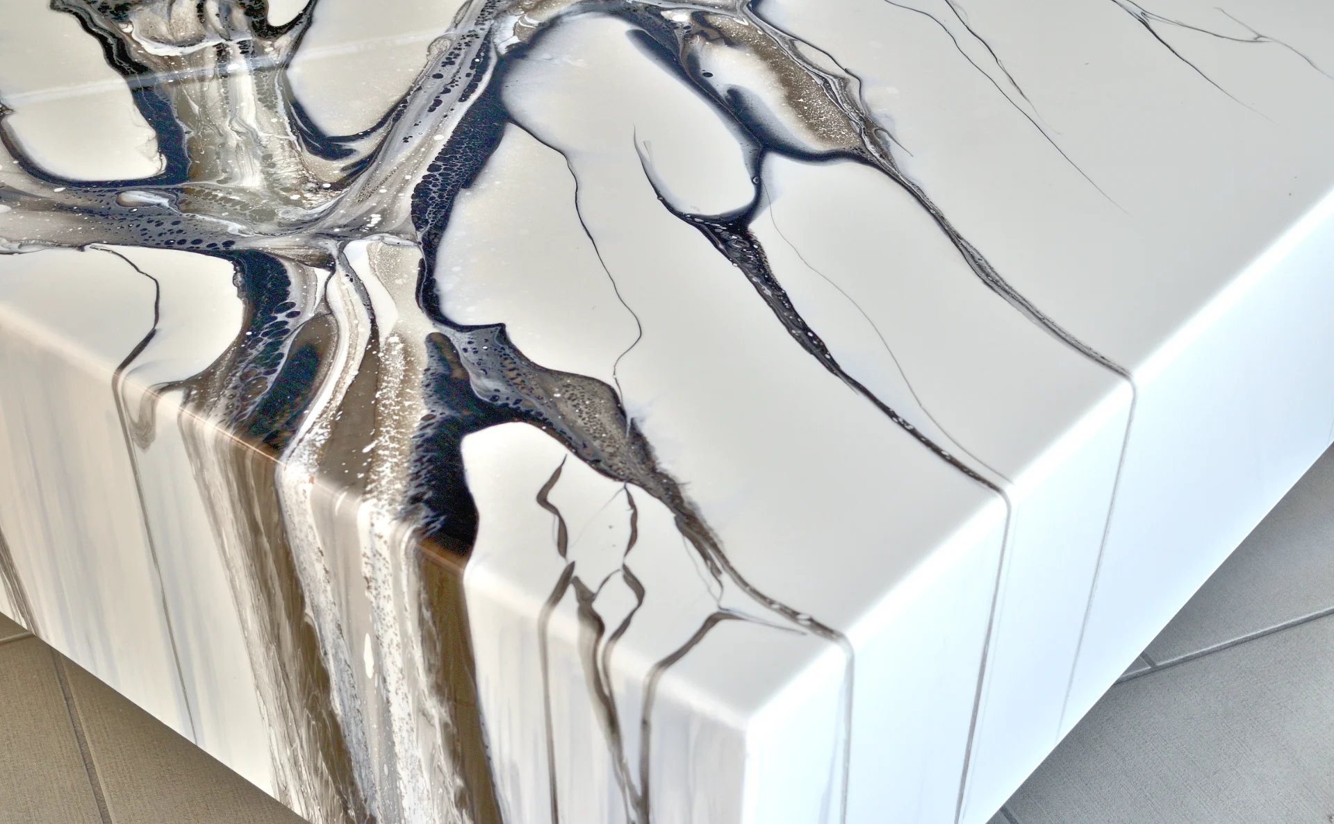 Υλικό επιφάνειας: Μαύρη γυαλιστερή επιφάνεια με λεπτές γραμμές που αποπνέουν μοντέρνα αισθητική.
