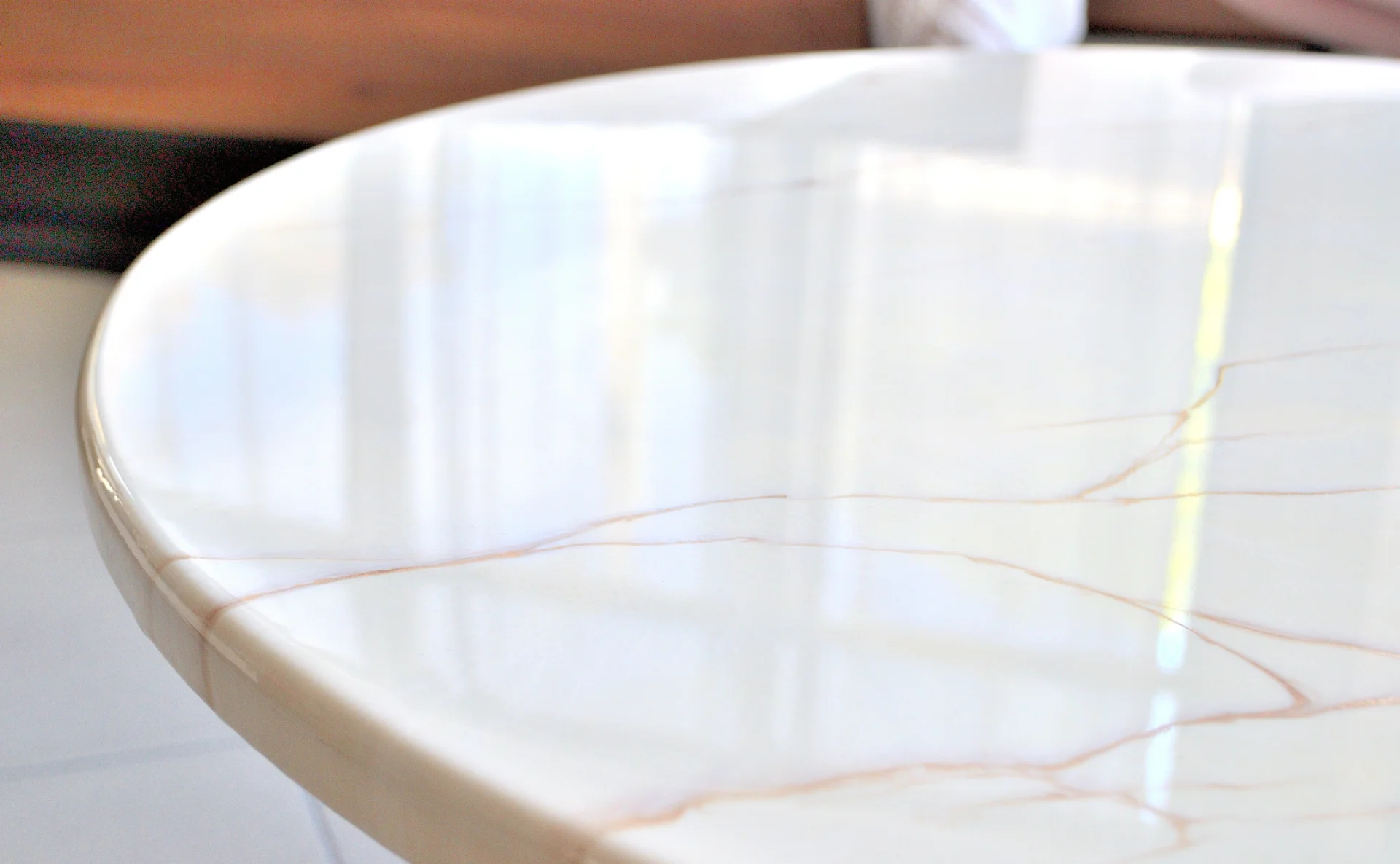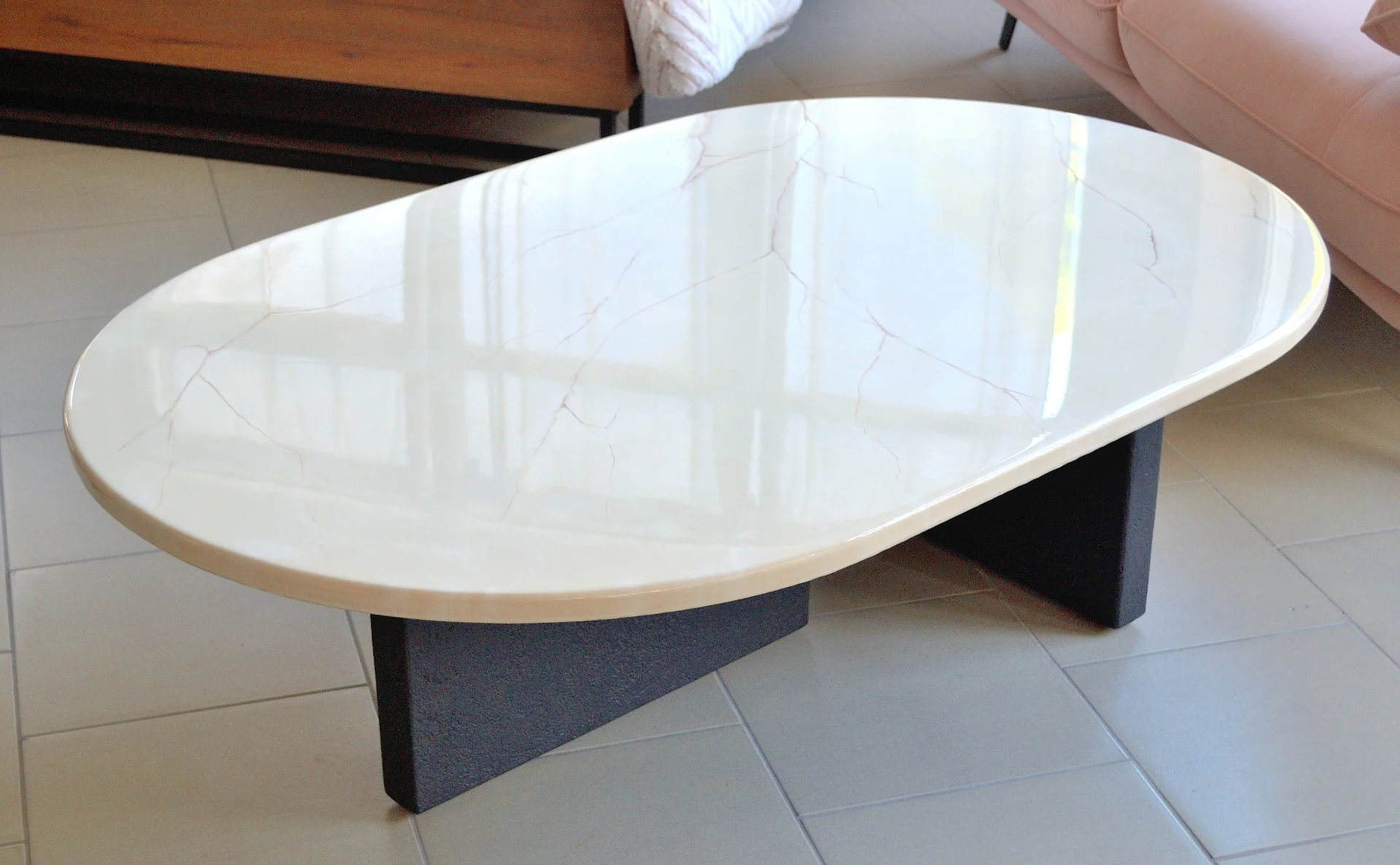 Ένα τραπεζάκι σαλονιού που συνδυάζει απόλυτα την κομψότητα με την υψηλή αισθητική. Η οβάλ επιφάνεια με γυαλιστερό φινίρισμα και απαλές φλέβες προσθέτει πολυτέλεια στον χώρο, ενώ η στιβαρή βάση με μοντέρνο σχεδιασμό ολοκληρώνει τη σύνθεση με σταθερότητα και στιλ. Ιδανικό για χώρους που αναζητούν ένα statement κομμάτι.