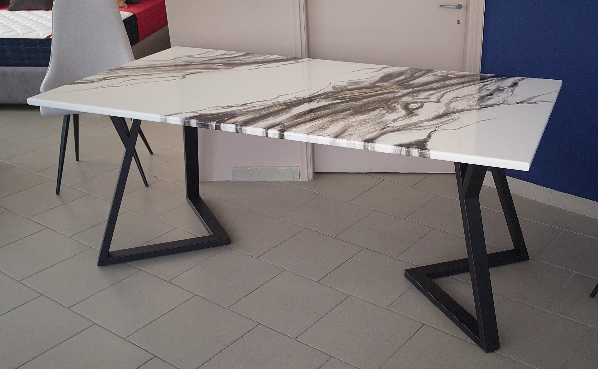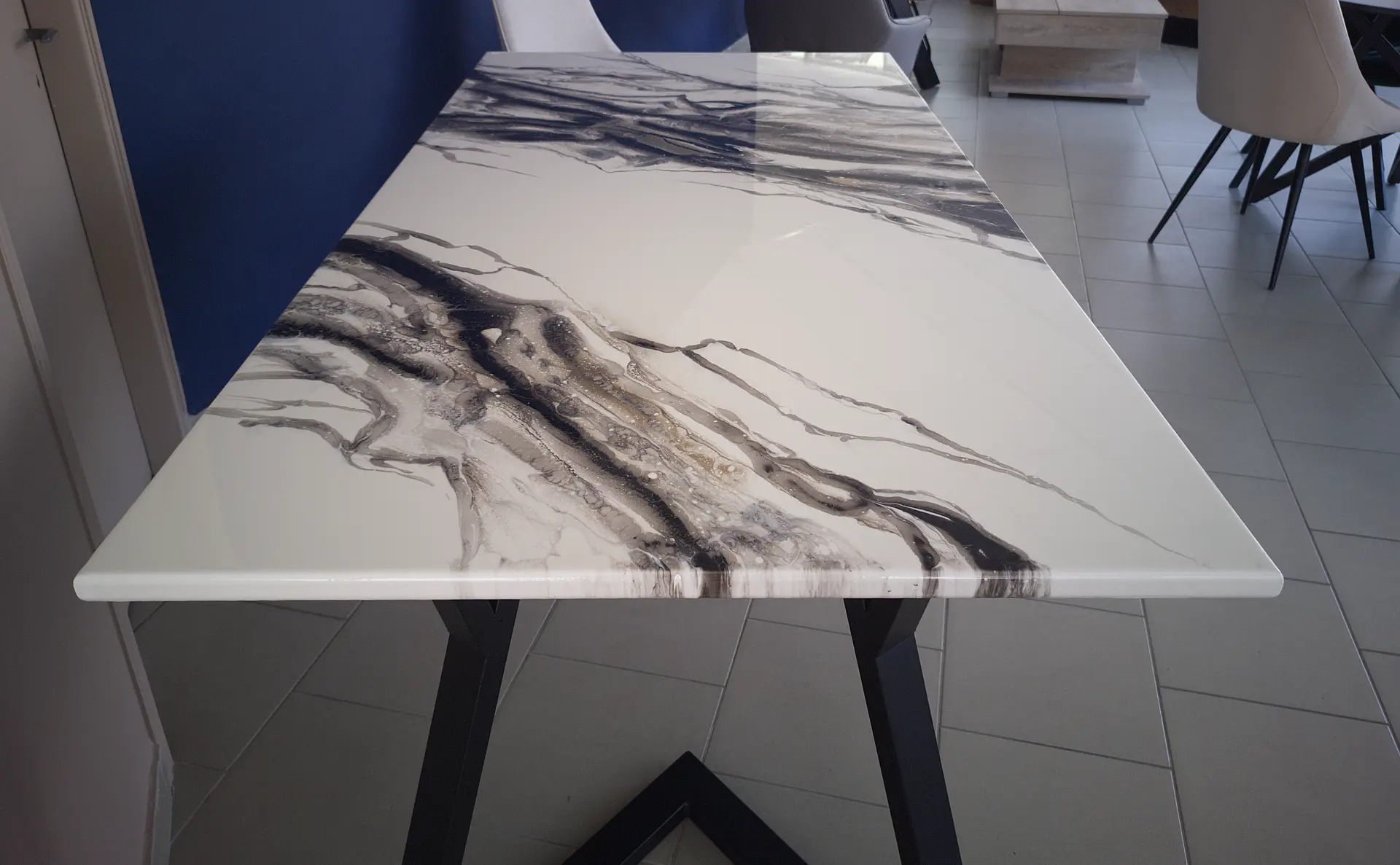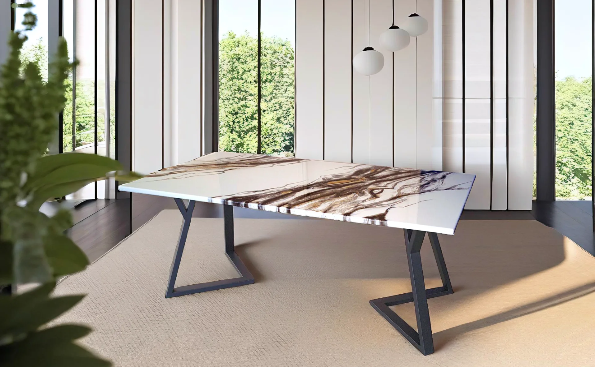 Η Luxury Τραπεζαρία Aether συνδυάζει μοντέρνα αισθητική και υψηλή ποιότητα, με γεωμετρική βάση και εντυπωσιακή επιφάνεια. Διαστάσεις: 170 ή 180 x 90 x 74 εκ.
