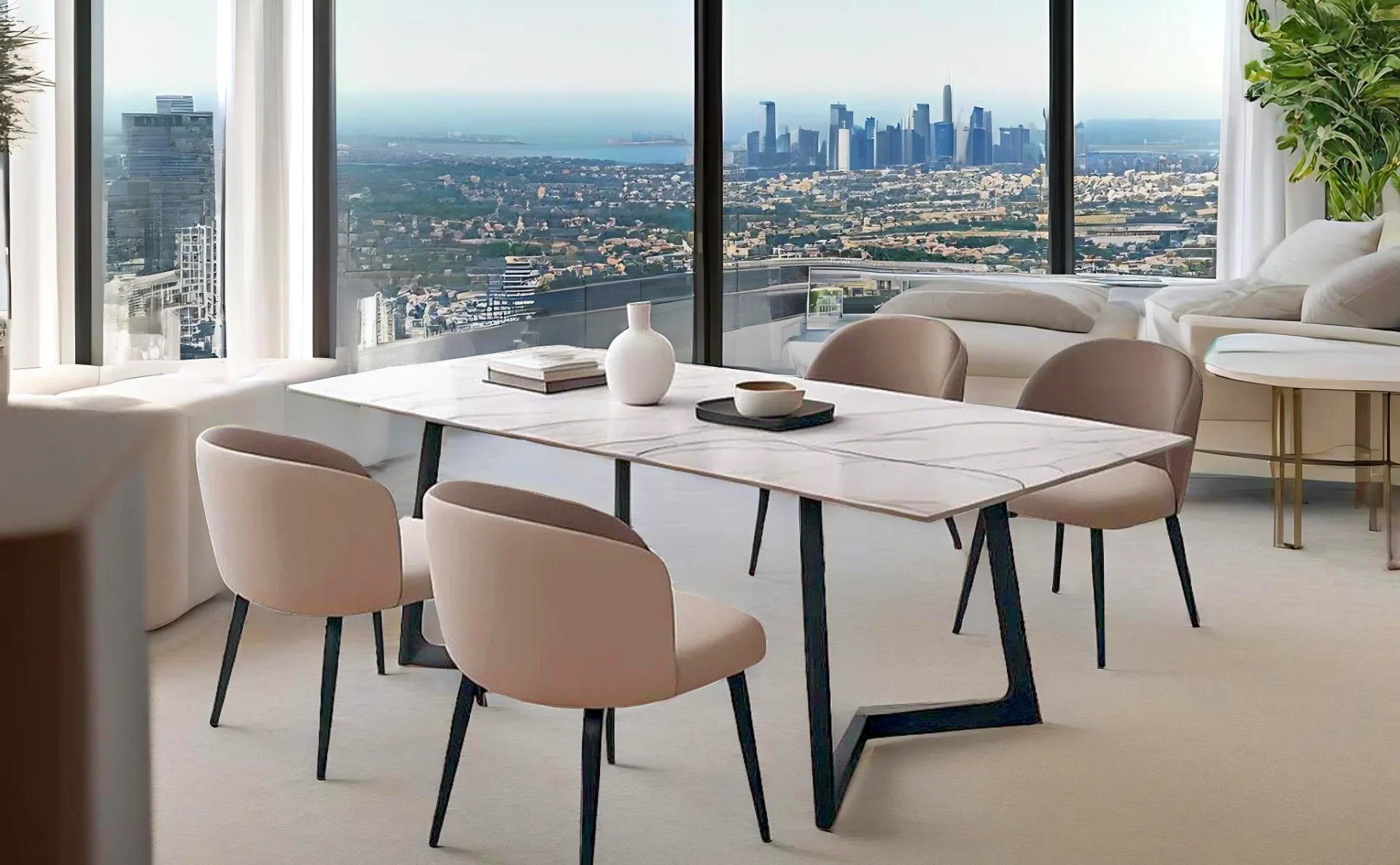 Η Luxury Τραπεζαρία Aether αποτελεί την ιδανική επιλογή για όσους αναζητούν ένα έπιπλο που συνδυάζει την κομψότητα με τη σύγχρονη αισθητική. Το minimal design της, με τις γεωμετρικές γραμμές στη βάση και την εντυπωσιακή επιφάνεια τραπεζιού, δίνει μια αίσθηση πολυτέλειας και διαχρονικότητας στον χώρο σας.