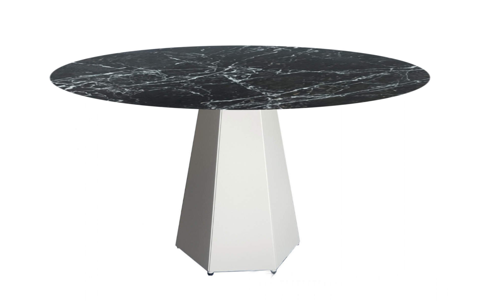 Η Luxury Τραπεζαρία Prism διαθέτει κυκλική επιφάνεια και πολυγωνική λευκή βάση για μοναδική αισθητική. Διαστάσεις: Φ100 x 74 εκ.