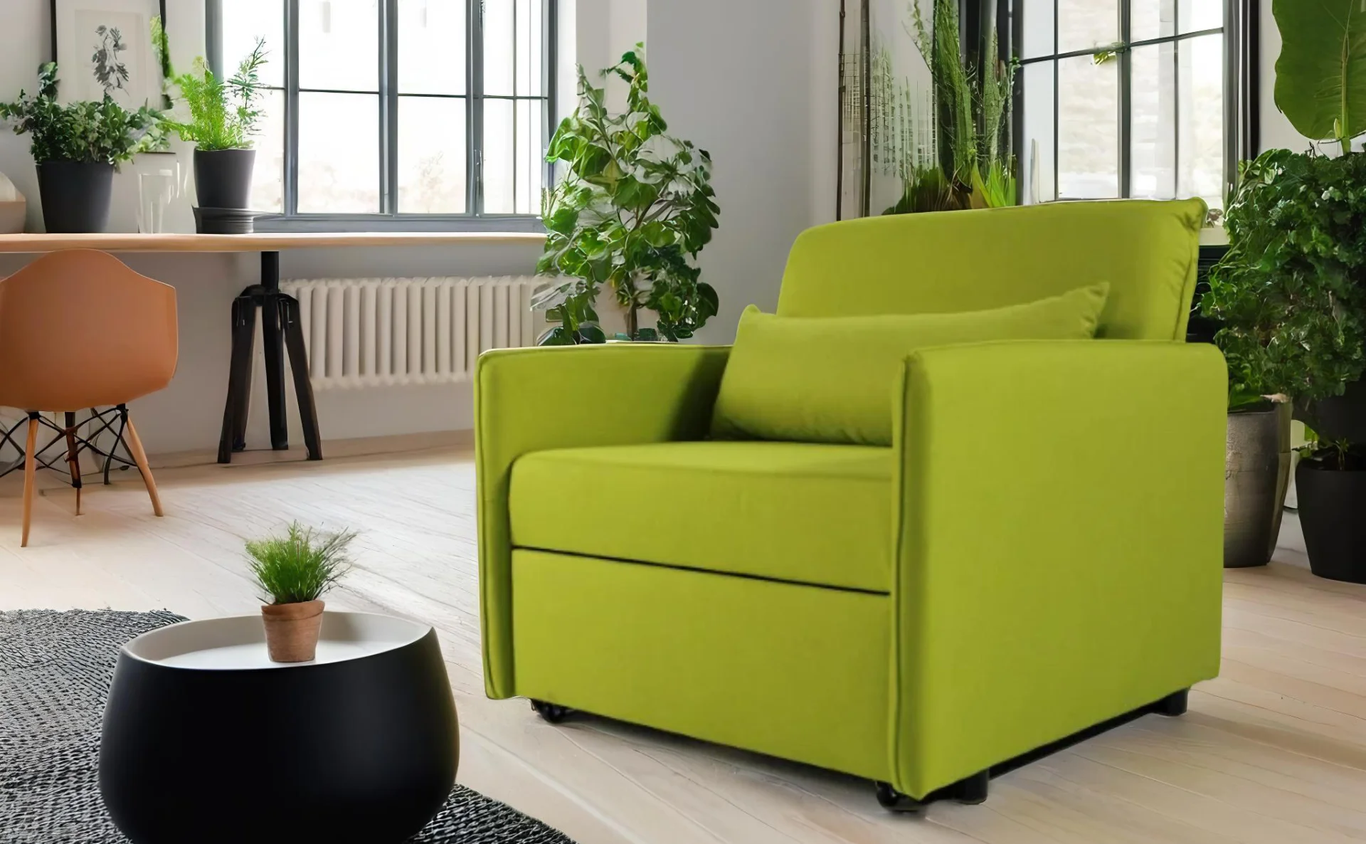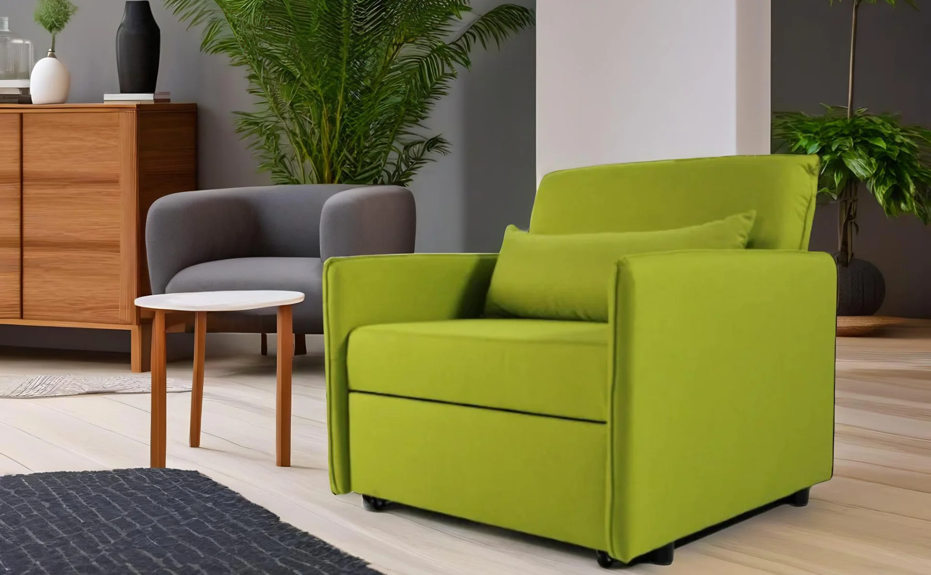 Η πολυθρόνα-κρεβάτι Eden 81202 προσφέρει άνεση και λειτουργικότητα, ιδανική για μικρούς χώρους ή δωμάτια φιλοξενίας. Με διαστάσεις 95x100 cm ως πολυθρόνα και 90x190 cm όταν μετατρέπεται σε κρεβάτι, παρέχει πρακτική λύση για επιπλέον χώρο ύπνου. Διατίθεται σε μεγάλη ποικιλία αδιάβροχων και αλέκιαστων υφασμάτων, επιτρέποντας την προσαρμογή της στις προτιμήσεις σας.