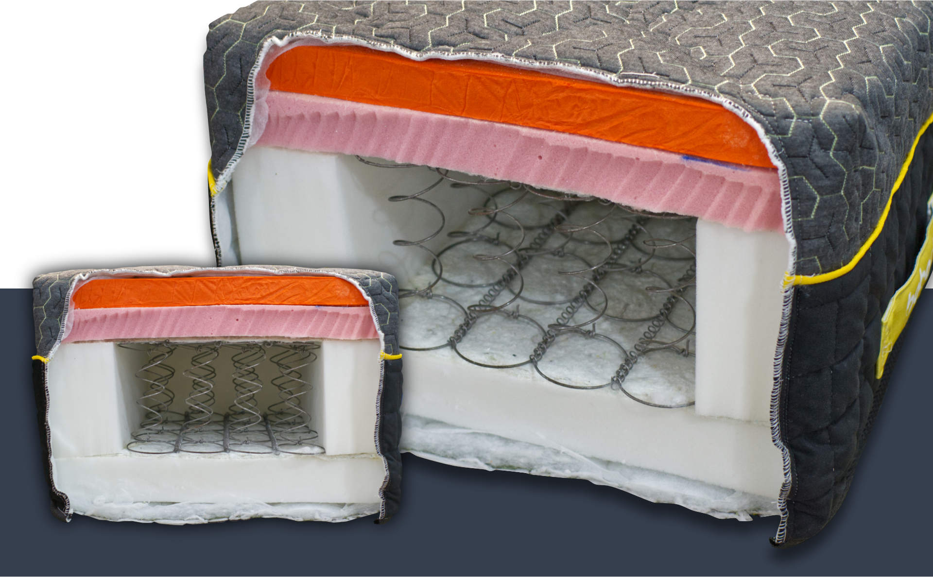 Ελατήρια που παράγονται από χάλυβα υψηλής περιεκτικότητας σε μαγγάνιο με μεγάλη διάρκεια ζωής, πολύ καλά στη στήριξη μεγάλων βαρών. Προστατεύουν τη φυσιολογική ισορροπία της σπονδυλικής στήλης. Χρησιμοποιούμε επικαλυμμένα και ανεξάρτητα ελατήρια Pochet, MiniPochet, MicroPochet σύμφωνα με το πρότυπο.