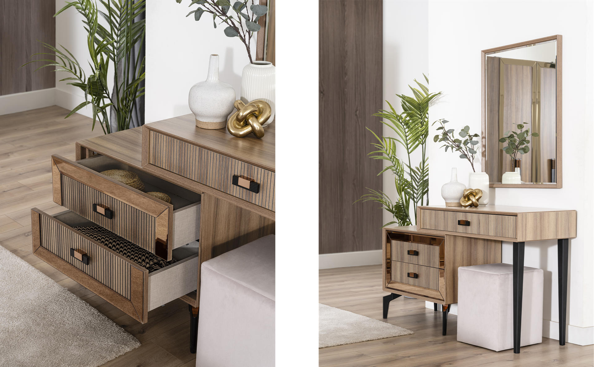 Βοηθητικά κομοδίνα, εξυπηρετικές συρταριέρες, όλα σχεδιασμένα εργονομικά με την καλύτερη ποιότητα.