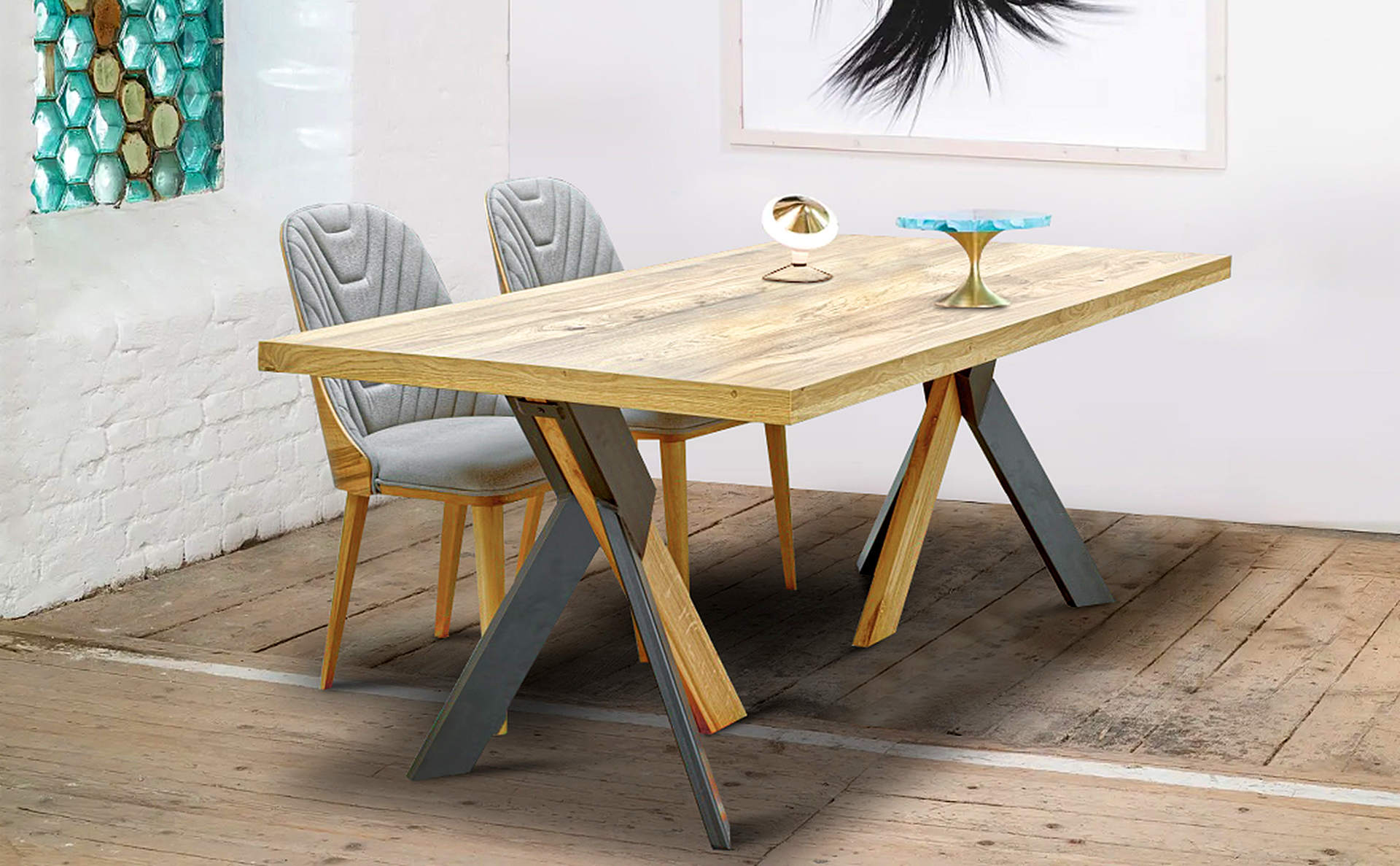 Πόδια, μεταλλικά με ξύλο δρυς ρουστίκ